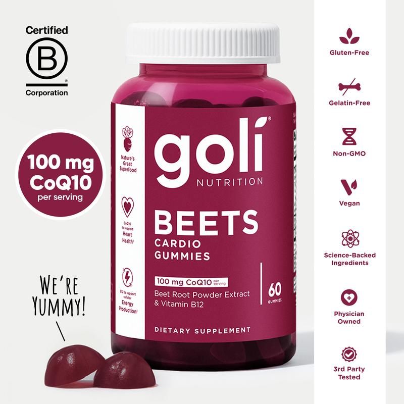 Goli Beets Cardio Gummy - Beet Root Extract & 100mg CoQ10, Gluten-Free, Vegan, Non-GMO, and Gelatin-Free. Nature's Great Superfood